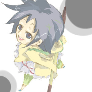 杖の下のほうはよく尖っております。鋭いです。この絵だと持ってるバランス的に刺す気かね。