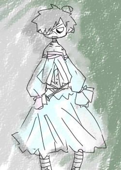 微妙な腹出し。腰の後ろには包帯みたいなリボンが。