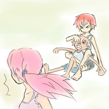 嫁がまたがれてますが。多分正面から見たらコータどんの顔は困ってる。