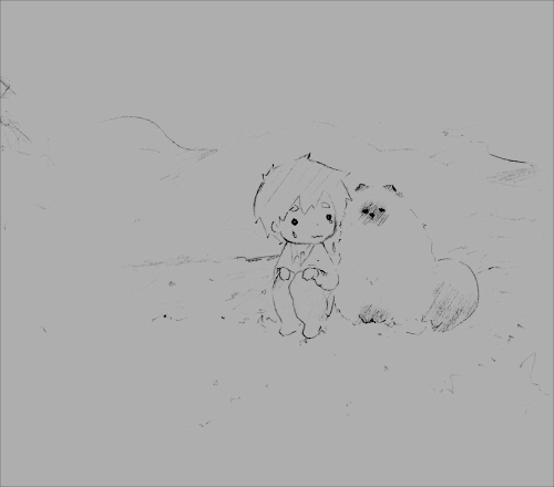 ええ、ラブ絵のお返しにアレしようかと思ったら、右手の故障で大きい大人なんて描けないよ!ってなってしまい。