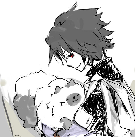 まやちゃんとテオフィルさん一緒に描くとまやちゃんが普通の猫サイズになる・・・。
